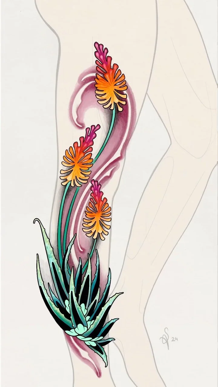 Traversing many styles within the discipline of tattooing, including both full colour and black work, she adopts techniques and applies her own individual flair to each piece she creates. Her work explores human nature and our relationship with plants, as well as where the natural world intersects with the βotherβ - blurring the line between our everyday lives and the realm of dreams.